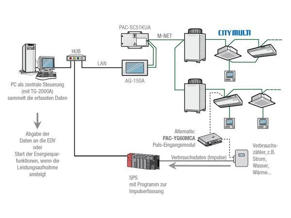 VRF-Systeme des Herstellers werden in großen Gewerbeimmobilien zur Komplettversorgung des Gebäudes mit Wärme, Kälte und Warmwasser eingesetzt. Solche Gebäude werden durch mehrere Mieter genutzt oder es besteht der Wunsch, getrennt nach Abteilungen oder Gebäudekomplexen die Energieverbräuche festzustellen, jedoch ohne dafür kostenaufwändig separate zusätzliche Zähler installieren zu müssen.