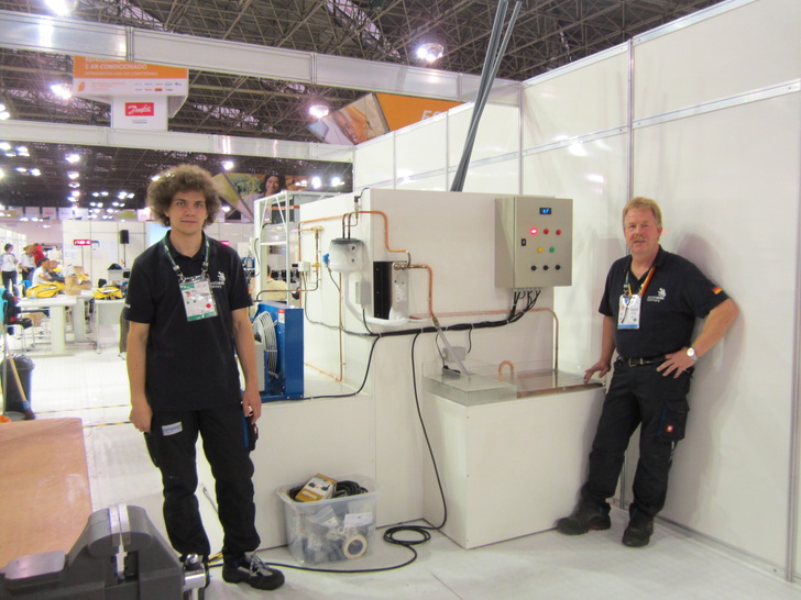 Als Vorbereitung auf diesen Wettbewerb trainierte Benaja Lötzsch mehrmals im IKKE in Duisburg und erhielt dort auch von den Ausbildern wertvolle Tipps und Unterstützung. Als “refrigeration technician“ mussten drei Einzelaufgaben erfüllt werden. Gestartet wurde mit der Fertigung eines Wärmetauschers als Arbeits-/Lötprobe (drei Stunden), bei der es beim Biegen, Bördeln und Löten um Ausführung, Maßhaltigkeit und Dichtigkeit ging. Bei der Installation einer Kälteanlage (13 Stunden) musste ein vollhermetischer Verflüssigungssatz mit einem Plattenwärmeübertrager zur Kühlung einer Sole in Betrieb genommen werden, um mittels des selbst gebauten Wärmetauschers eine kleine Eisbahn zu betreiben.