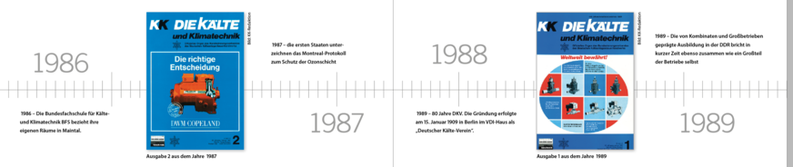 Der Anteil der Rubrik „BIV-Kälteanlagenbauer“ machte zeitweise die Hälfte des Heftumfangs aus, wodurch die KK Mitte der 80er-Jahre eine Mischung aus Planerzeitschrift mit Fachbeiträgen über Ventilatorentechnologien, Luftfilter, Büroklimatisierung, kältetechnische Komponenten und Systeme, Regelungsvarianten und Kältemittel sowie Handwerkermagazin mit Beiträgen aus den Innungen, über Mitglieder, die Berufsausbildung sowie zum Verbandsgeschehen war, dies ergänzt durch zahlreiche Berichte über Messen und Fachveranstaltungen – der DKV feierte 1984 beispielsweise in Baden-Baden sein 75-jähriges Jubiläum – aus dem In- und Ausland sowie bereits erwähnt durch regelmäßige Firmenreportagen. lm gleichen Jahr wie das DKV-Jubiläum wurde auch der Grundstein für den Neubau der Bundesfachschule Kälte- und Klimatechnik in Maintal gelegt, der Ausbildungsstätte der Landesinnung Hessen für die berufliche Aus-, Fort- und Weiterbildung im Kälteanlagenbauerhandwerk, die sich zur bedeutendsten in Deutschland entwickeln sollte.