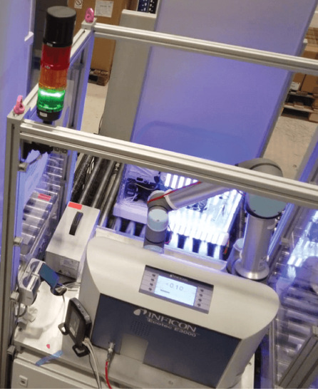 Infinicon präsentiert sein Angebot für die Roboter-Schnüffellecksuche in der Fertigungslinie von Kühlschränken. Highlight soll ein eigens für Inficon entwickeltes visuelles Analysesystem aus 3D - Scanner und Software sein, um die zu prüfende Stelle in Echtzeit exakt zu lokalisieren. Dazu soll die Bahnplanung des verwendeten Roboters in Verbindung mit dem Lecksuchgerät Ecotec E 3000 so optimiert werden, dass dieser alle Prüfpunkte auf dem kürzesten Weg ansteuert und es dabei zu keinerlei Kollisionen mit den Bauteilen kommt. Mit einem Echtzeit-Vergleich einer mit Streifenlicht erzeugten 3D - Punktwolke lokalisiert die Bilderkennung zu prüfende Lötstellen. Bei neuralgischen Stellen wie etwa Löt- oder Schweißpunkten, deren genaue Position aufgrund von Fertigungstoleranzen oft erheblich schwankt, soll die Bilderkennung dafür sorgen, dass der Roboterarm die Schnüffelspitze millimetergenau platziert. Daneben soll sie sie nicht erreichbare Prüfpunkte erkennen, die von anderen Elementen verdeckt werden oder die anzufahren zu einer Kollision führen würde.