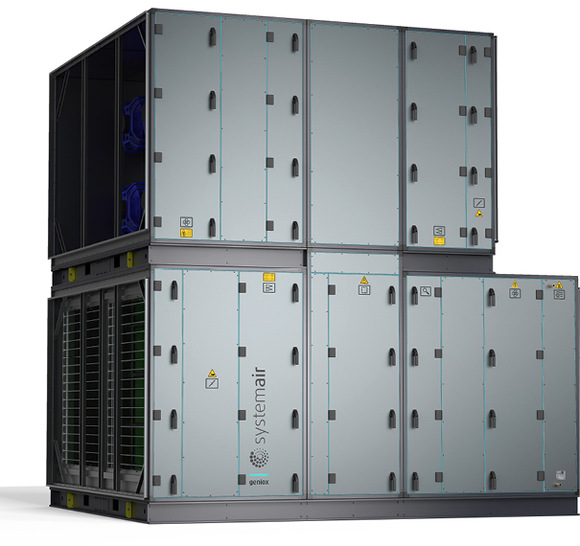 Das modulare Lüftungsgerät Geniox ist für Luftmengen von 750 bis 110.000 m³/h verfügbar. Das soll eine flexible Lüftung ermöglichen, die Shops oder Restaurants, aber auch größeren Gebäuden wie Hallen, Kaufhäusern oder Büros und Hotels gerecht wird. Geniox ist in 16 Baugrößen verfügbar und Eurovent-zertifiziert. Das Zertifikat bestätigt die Leistungsangaben von Klima- und Kältetechnikprodukten nach europäischen und internationalen Normen. Die Lieferung erfolgt mit einer Dokumentation für die Montage und die Wartung des Geräts. Geniox kann mit der Regelung Systemair Access geliefert werden. Bei diesem System können Funktionen und Kenngrößen über die externe Bedieneinheit eingestellt werden. Die Bedieneinheit kann am Gerät angebracht, aber auch als Fernbedienung genutzt werden. Für die Inbetriebnahme ist die Regelung auf Temperaturen, Zeiteinstellungen und Regelsequenzen voreingestellt.