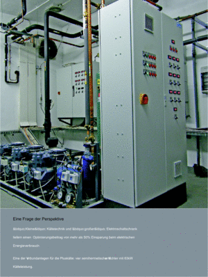 In Deutschland gibt es einen erheblichen Bestand an Kälte- und Klimaanlagen. Die Projektierung und der Bau dieser Anlagen erfolgte in der Vergangenheit mit der Fokussierung auf möglichst geringe Investitionskosten und eine gute Umsetzbarkeit der Projekte. Dieser Ansatz war nur so lange zulässig, wie Energie günstig zur Verfügung gestellt wurde.