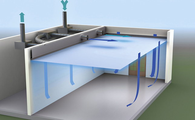 Die Barrisol Clim ist eine Spanndecke, bei der eine Membran aus natürlichen Rohstoffen den gesamten Raum überspannt. Die Klimatisierung erfolgt durch einen unsichtbar über der Spanndecke installierten Klimakonvektor von Carrier und Schlitze zwischen Membran und Wand, durch die die Luft nach unten...