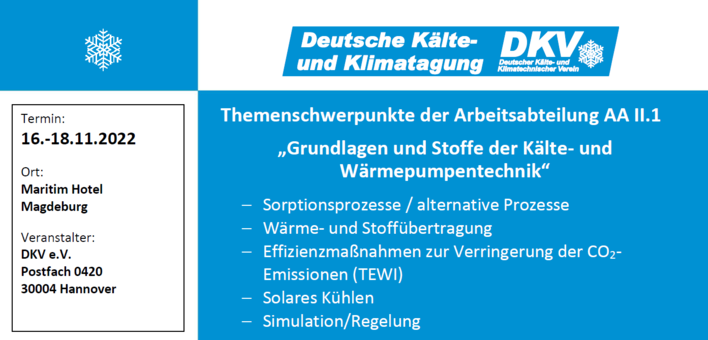Die diesjährige Jahrestagung des Deutschen Kälte- und Klimatechnischen Vereins (DKV) findet vom 16.-18. November in Magdeburg statt; das Vortragsprogramm gliedert sich entsprechend der fünf Arbeitsabteilungen: Kryotechnik, Grundlagen und Stoffe der Kälte- und Wärmepumpentechnik, Kälteanwendungen, Klimatechnik und Wärmepumpenanwendungen.
