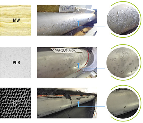 Feuchte Isolierungen schützen die Anlagen weder vor Energieverlusten noch vor Korrosion. Wie eine Untersuchung des Fraunhofer-Instituts für Bauphysik (IBP) gezeigt hat, sind Armaflex-Dämmstoffe von Armacell gut vor Feuchteaufnahme geschützt. Der geschlossenzellige Elastomerdämmstoff steigert auch langfristig die Energieeffizienz technischer Anlagen. Der Einsatz von Mineralfaserprodukten auf Kälteleitungen ist dagegen ein nicht kalkulierbares Risiko, das in hohen Folgekosten münden kann. Georgios Eleftheriadis, Münster