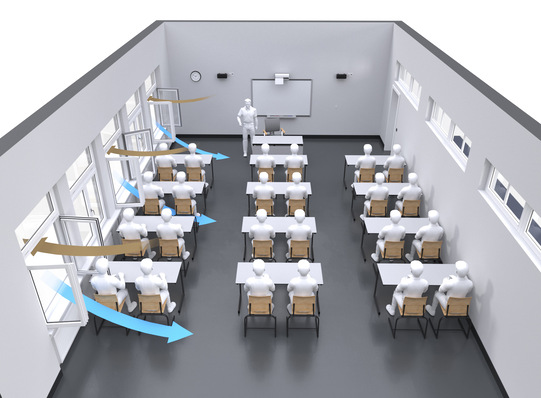 Der Arbeitskreis Klimatechnik hat unter dem Titel „Lüftung unter Pandemiebedingungen“ eine Stellungnahme zu Schulen und vergleichbaren Räumen veröffentlicht. Der Orientierungsleitfaden stellt die Vor- und Nachteile vier verschiedener Systeme gegenüber, die prinzipiell zur Verdünnung und Abfuhr von schädlichen Aerosolpartikeln, wie z.B. SARS-CoV-2 Viren, verwendet werden. Das sind Luftreiniger, Fensterlüftung, ventilatorunterstützte Fensterlüftung und zentrale oder dezentrale Raumlufttechnische Anlagen mit Außenluft und Wärmerückgewinnung.