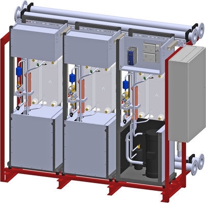 Die Kaskaden-Wärmepumpe WP Max-KK von ratiotherm für den Sole / Wasser- oder Wasser / Wasser-Betrieb erreicht flexibel eine Leistung von bis zu 100 kW. Bei der Verteilung der Kältekreise kann frei zwischen den Leistungsgrößen 15, 25 und 35 kW und einem Modul mit flexibler Invertertechnik gewählt...