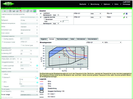Mit der Bitzer-Software 6.5.0 können Kunden für Produkte mit neuen Kältemitteln die Leistungsdaten berechnen und technische Informationen abrufen. Dadurch unterstützt der Verdichterspezialist die Anwender bei der Auswahl der passenden Komponenten. Mit dem Update auf die Version 6.5.0 sind nun die externen Varipack Frequenzumrichter in der Auslegungssoftware enthalten. Die Produktserie Varipack eignet sich zur einfachen und sicheren Leistungsregelung in Kälte- und Klimaanlagen und wurde speziell für die Kältemittelverdichter des Unternehmens entwickelt.