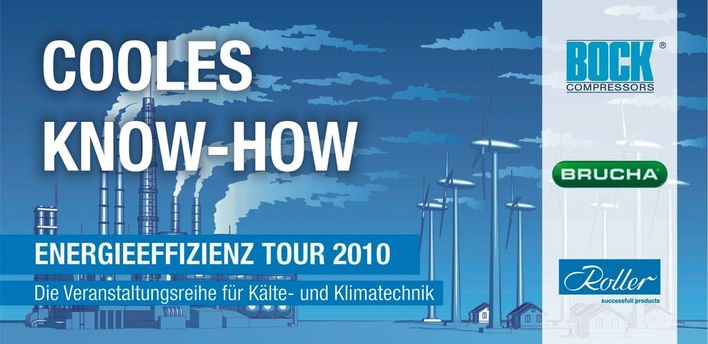 Unter dem Motto Cooles Know-how fand zum ersten Mal eine Veranstaltungsreihe der Firmen Bock, Brucha und Roller in Österreich statt. Vom 2. bis 5. März informierten die Firmen in Innsbruck, Salzburg, Wien und Graz interessierte Besucher zum Thema Effizienz in der Kältetechnik.