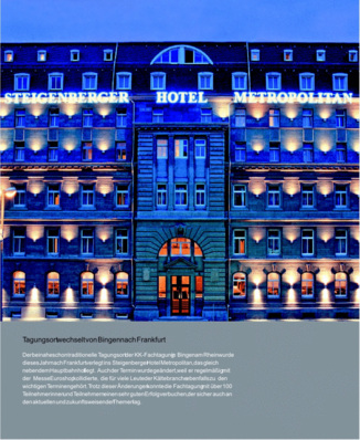 Am 26. Mai 2009 findet in Frankfurt am Main die 8. KK-Fachtagung zum Thema Perspektiven in der Kältetechnik Marktchancen und technische Entwicklungen statt. In der letzten Ausgabe der KK hatten wir Ihnen bereits einige allgemeine Informationen zu den Inhalten und zum Veranstaltungsort gegeben. Inzwischen sind die Vortragsthemen mit den Referenten endgültig abgestimmt, so dass wir Ihnen das Programm nun detaillierter vorstellen können.