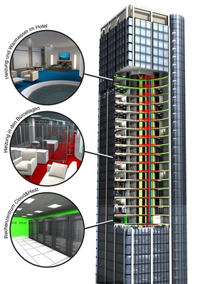 Cloud&Heat Technologies hat den ersten Teil des neuen Rechenzentrums im Hochhaus Eurotheum in Frankfurt am Main eingeweiht. Die Technik des Dresdner Unternehmens schafft nicht nur ein umfangreiches Angebot im Bereich Cloud Computing, sondern heizt gleichzeitig das Gebäude.