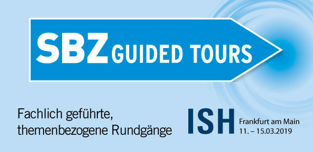 Die SBZ SANITÄR.HEIZUNG.KLIMA bietet dem SHK-Fachhandwerk auf der ISH 2019 geführte Rundgänge zu den Innovationen der Sanitär- und Heizungsbranche. Vom 11.-15. März werden Sie von kompetenten Guides zu Messeständen ausgewählter Hersteller geführt. Jetzt kostenlos anmelden. mehr...