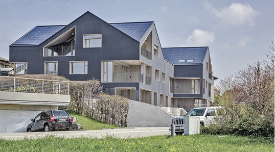 In der Gemeinde Brütten in der Schweiz steht das erste Mehrfamilien-Wohngebäude der Welt, das ganzjährig ohne externe Energiequelle auskommt. Keine der neun Wohnungen ist an das öffentliche Netz angeschlossen. Der gesamte Strom wird aus selbst produzierter Sonnenenergie sowie aus der Erdwärme gewonnen. Das Mehrfamilienhaus, das ohne externen Anschluss für Strom, Öl und Erdgas auskommt, wurde für die Wärme- und Warmwasserproduktion mit einem Wärmepumpensystem von Hoval ausgestattet. Marc-André Rusch, CH-Feldmeilen