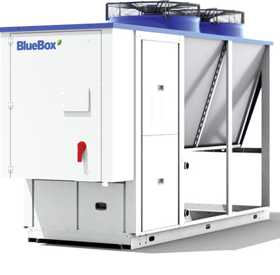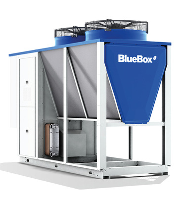 Das Gerät mit dem natürlichen Kältemittel Propan (R290) ist zum Heizen oder Kühlen von Wasser oder Sole konzipiert. Die außen aufgestellte BlueBox Titan Sky leistet im Kühlbetrieb 30-195 kW, als Wärmelieferant 30-175 kW. Ihr SCOP liegt bei bis zu 4,12 (mit optionalen EC-Ventilatoren und...