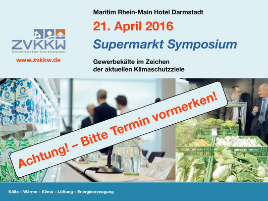 Gewerbekälte im Zeichen der aktuellen Klimaschutzziele“, so lautet das Motto des diesjährigen ZVKKW-Supermarkt-Symposiums, das am Donnerstag, den 21. April 2016 im Maritim Rhein-Main Hotel Darmstadt stattfinden wird.