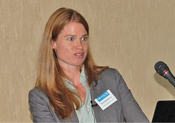 Mit den Einzelheiten der Quotierung befasste sich Andrea Voigt. Basis bilden die Daten von 2009 bis 2012 bezüglich der produzierten oder importierten Mengen. Davon abgeleitet werden die Quoten für die traditionellen Hersteller und für neu dazugekommene Hersteller auf der Grundlage von deren Antragstellung ermittelt. Ein Ansammeln von Quoten durch Nichtverbrauch in einem Jahr ist nicht möglich, sondern bedeutet Zurücksetzung der Quote auf den tatsächlichen Wert. Umfangreiche spezifische Bestimmungen ergänzen diese wichtige Aussage. Zusammenfassend machte sie klar, dass sich die Industrie nun eindeutig auf die Kürzungen und Verbote einstellen muss, dass für viele Anwendungen die Lösungen mit natürlichen Kältemitteln verfügbar oder machbar sind und wiederholte, dass der Mengenreduzierung die Schlüsselrolle zukommt.