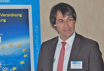 Hans-Jürgen Kemler, Westfalen AG, stellte in seinem Vortrag den Blick eines Kältemittelhändlers auf die neue F-Gase-Verordnung dar. Das gesamte Programm der synthetischen Kältemittel wird eingekauft, nur CO2 wird seit Kurzem selbst hergestellt. Damit baute er auf den Stoffen auf, die von den beiden Vorrednern vorgestellt worden waren, aber auch von zwei weiteren Herstellern stammen können. Die Palette des Händlers ist aber im Sinne der praktischen Beherrschbarkeit gegenüber der Palette der Hersteller schon deutlich eingeschränkt. Für den Händler erweist sich die Problematik der Quotierung der Kältemittel als wichtiges Arbeitsmittel, ebenso die Beachtung des Kaufs- und Verkaufsverbotes bestimmter Stoffe und Mengen. Das Unternehmen hat auch schon klare Vorstellungen zur Rücknahme und Verwertung der zurückgenommenen Stoffe, sowie für die Kennzeichnung der aufgearbeiteten Mengen, um die künftigen Vorschriften einzuhalten.
