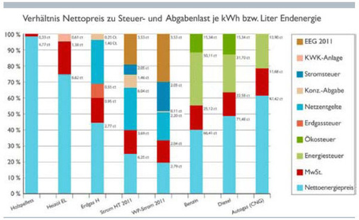 Der BWP präsentierte ebenfalls in Nürnberg das Positionspapier Die Lenkungswirkung von Steuern und Abgaben auf Energieträger im Wärmemarkt. Derzeit wird der Wärmepumpenstrom mit einem Anteil von über 78 Prozent Steuern und Abgaben belastet, während Erdgas nur 53 Prozent und Erdöl sogar nur 23 Prozent Steuern und Abgaben tragen (inklusive der Netzentgelte). Der reine Nettoenergiepreis für Wärmepumpen-Strom ist dagegen in den letzten Jahren nahezu gleich- geblieben und liegt deutlich unter den Preisen der konkurrierenden fossilen Energieträger je Kilowattstunde Wärme. Damit werden die fossilen Heiztechnologien durch den geringeren staatlichen Preisanteil tendenziell besser gestellt. Dies sei eine Barriere für die Energiewende im Wärmemarkt, erklärt BWP-Geschäftsführer Karl-Heinz Stawiarski: Die Bundesregierung muss die Rahmenbedingungen schaffen, damit sich private Investitionen in erneuerbare Wärme wieder lohnen. Das Verhältnis der Energiepreise im Wärmemarkt zueinander hat einen erheblichen Einfluss auf die Amortisationszeit.
