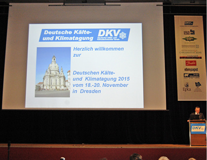 Die eigentliche DKV-Tagung begann am Donnerstag, den 19. November – ebenfalls traditionell – mit den Ehrungen. Bedingt durch die deutsche Wiedervereinigung vor 25 Jahren gab es in diesem Jahr mit 63 auszuzeichnenden Personen eine regelrechte Schwemme“ von Silbernen Ehrennadeln für die 25-jährige Mitgliedschaft. Viele Neumitglieder waren im Wendejahr 1990 aus den neuen Bundesländern in den DKV eingetreten. Immerhin waren 22 von ihnen anwesend. Neunmal gab es die Goldene Ehrennadel für 40 Jahre Mitgliedschaft (zwei Anwesende) und sechsmal die Goldene Ehrennadel für 50 Jahre Mitgliedschaft (nur ein Anwesender), jeweils ein Mitglied wurde für 60 resp. 65 Jahre Mitgliedschaft im DKV geehrt. Eine DKV-Münze gab es diesmal nicht. Den DKV-Studienpreis für herausragende Studien- oder Abschlussarbeiten auf den Arbeitsgebieten des Vereins erhielt in diesem Jahr der ESaK-Student Chris Fattroth für seine Bachelorarbeit zur Untersuchung der Einsatzgrenzen eines Tiefkälte-Umwälzthermostaten mit einstufiger Kältetechnik“. Die Laudatio hielt ESaK-Dozent Dr.-Ing. Rainer Jakobs.