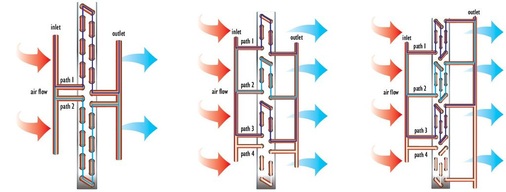 Die Auswirkungen von Rohrkreislauf und Lamellenform auf die Wärmeübertragerleistung wurden genau untersucht; optimale Konfigurationen können mit den neuesten Software-Tools identifiziert werden. Prüfungen anhand von Wärmeübertrager-Prototypen und Messungen der tatsächlichen Leistung im Labor haben ergeben, dass die Ergebnisse dieser Simulationen heute mit der tatsächlichen Wärmeübertragerleistung sehr genau (Abweichung von einem Prozent) übereinstimmen.