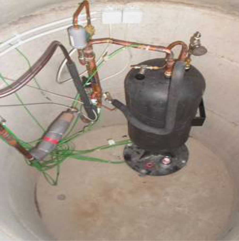 Für die Versuche wurden zwei gleiche Wärmepumpen aufgestellt, nämlich die Solewärmepumpe und die Wärmepumpe für das CO 2 -Erdwärmerohr, die sich nur hinsichtlich des Verdampfers unterscheiden.