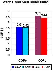 Das Potenzial der höheren energetischen Qualität des CO 2 -Systems wurde auch von Peterlunger, Professor Ehrbar et al. aus Buchs, Schweiz, vorhergesagt, die durch Berechnungen mit den Daten einer ähnlichen Wärmepumpe, wie hier verwendet, den Bereich der Jahresarbeitszahlen für die betrachtete Wärmepumpe mit einer Solesonde in Abhängigkeit von der Qualität der Solepumpe zwischen 3,63 und 4,06 und den mit einer CO 2 Erdwärmesonde, abhängig vom Kältemittelgemisch wie R 407 C oder einem Einstoffkältemittel zwischen 4,68 und 5,29 ermittelte4.