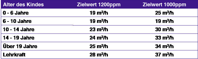 Mit den Methoden der DIN EN 15251 kann man sehr einfach den Außenluftbedarf, z.B. für eine Schule oder einen Kindergarten festlegen (Bild 9). Unterstellt man Gruppengrößen von 20 Kindern plus Lehrer, dann ist der personenabhängige Anteil in einer Schule und einem Kindergarten je nach Alter ca. 440 bis 700m³/h. Leider werden in der derzeitigen Planungspraxis immer wieder Fragen gestellt, ob in diesem Zusammenhang ein Außenluftwechsel von n=0,31/h für ein Passivhaus ausreichend sei. Eigentlich sprechen die hier beispielhaft dargestellten Zahlen für sich selbst. Der Energiebedarf darf nicht zum allein bestimmenden Maßstab werden.