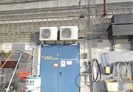 Um nicht nur die Betriebssicherheit der Anlagen, sondern auch den Gesundheitsschutz ihrer Mitarbeiter zu gewährleisten, lässt die Lufthansa Technik Logistik Services GmbH ihre Geräte regelmäßig warten. Dabei werden die üblichen Sichtkontrollen vorgenommen, besonderer Wert auf die Dichtigkeitsprüfung der gesamten Anlagen gelegt und Verschleißteile turnusmäßig ausgetauscht. Zudem werden bei jeder Wartung alle Innen- sowie Außengeräte gründlich mit den in den Hygienevorschriften festgelegten Reinigungsmaterialien gereinigt. Damit verhindert man eine mögliche Bakterienbildung in den Verdampfern und gesundheitliche Gefährdungen. Ebenso wie die Einhaltung der Raumtemperaturen und der Luftfeuchtigkeit über einen Zeitraum von jeweils vier Jahren hinweg aufgezeichnet und archiviert wird, müssen auch die Wartungen nach den Richtlinien des VDMA und der BGV D4 protokolliert und aufbewahrt werden. -