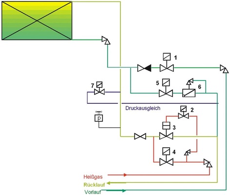 Bei der Inbetriebnahme von Kühlhäusern einer neuen Bauserie ereigneten sich mehrfach Schweißnahtrisse und Rohrbrüche mit anschließenden umfangreichen NH 3 -Emissionen und zwangsläufigen Betriebsunterbrechungen. Beim Abtauen stellte sich im Verdampfer gegenüber dem Saugdruck ein sehr viel höherer Druck ein. Beim Öffnen des Flüssigkeitsvorlaufventils treffen Stoffströme mit rund 15 bar Druckdifferenz aufeinander, woraus unzulässige Belastungen und Brüche entstehen. Vor Prozessumschaltung musste ein Druckausgleich hergestellt werden, weshalb in den Regelstationen der druckabhängige Ausgleich nachgerüstet wurde.