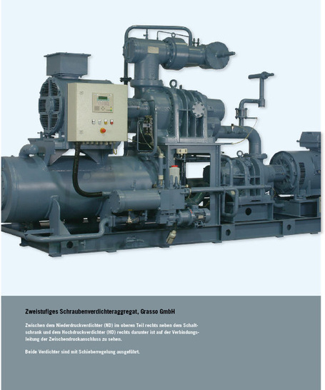 Grasso ist Hersteller von Schraubenverdichteraggregaten in beiden Ausführungen und liefert auf Kundenwunsch die eine oder andere Variante. Im Jahr 2006 wurden 23% der Schraubenverdichteraggregate für Verdampfungstemperaturen unterhalb von 35°C gemäß Variante (2) für Industrieanwendungen konkurrierend zu Variante (1) geliefert.