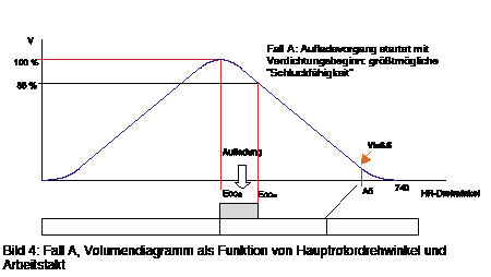 Im Fall A beginnt der Aufladevorgang mit Verdichtungsbeginn bei maximalem Zahnlückenvolumen. Der Verdichter hat an der Economiseröffnung die größtmögliche Schluckfähigkeit (Bild 4).