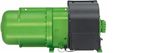 Der Frequenzumrichter ist im Verdichter integriert und für hohe Wirkungsgrade parametriert. Die kompakte Einheit braucht wenig Platz und erfüllt die Anforderungen der EMV-Richtlinien für Industrie- und optional für Wohngebiete. Mit der Softstart-Funktion des Frequenzumrichters ist der Anlaufstrom klein. Die Schraubenverdichter haben einen großen Drehzahlregelbereich (> 1:4 bis 1:6) und Vi-Schieber, durch den das variable Vi automatisch auf den jeweiligen Betriebspunkt angepasst wird. Sie kommunizieren per Modbus mit einer übergeordneten Steuerung. Wenn vorgegebene Parameter überschritten werden, erfolgt zunächst eine Warnmeldung an den übergeordneten Anlagenregler. Bei Überschreitung eines weiteren Grenzwertes wird ein Alarmmodus aktiviert.