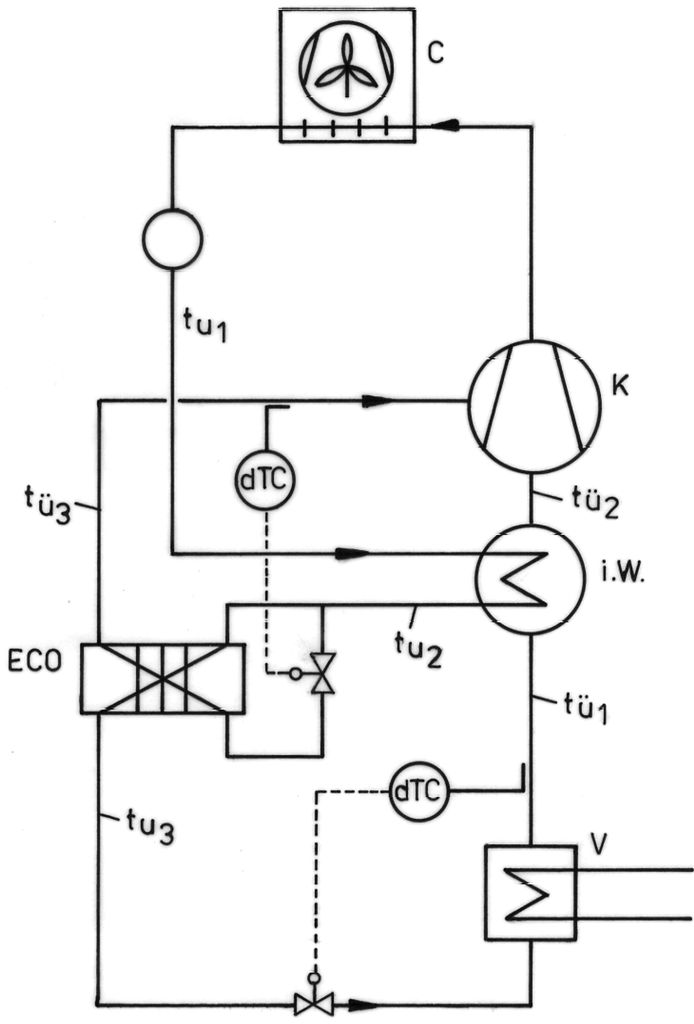 Diese Kombination besitzt dadurch Entwicklungsreserven, dass sich für Schraubenverdichter in Kälteanlagen eine Erniedrigung des Einschleusdruckes für den Eco-Dampf bis zur Erreichung der Unterkühlungstemperatur