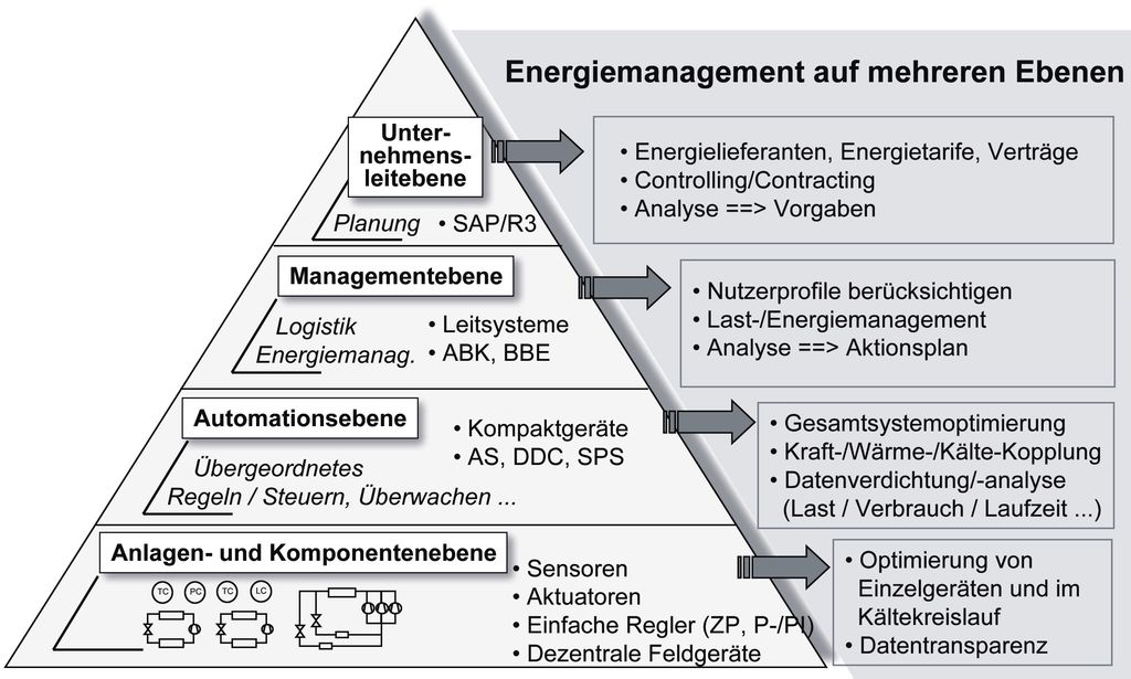 Umgesetzt in automatisierungstechnische Lösungen entstehen Strukturen in mehreren Ebenen gemäß Bild 2.