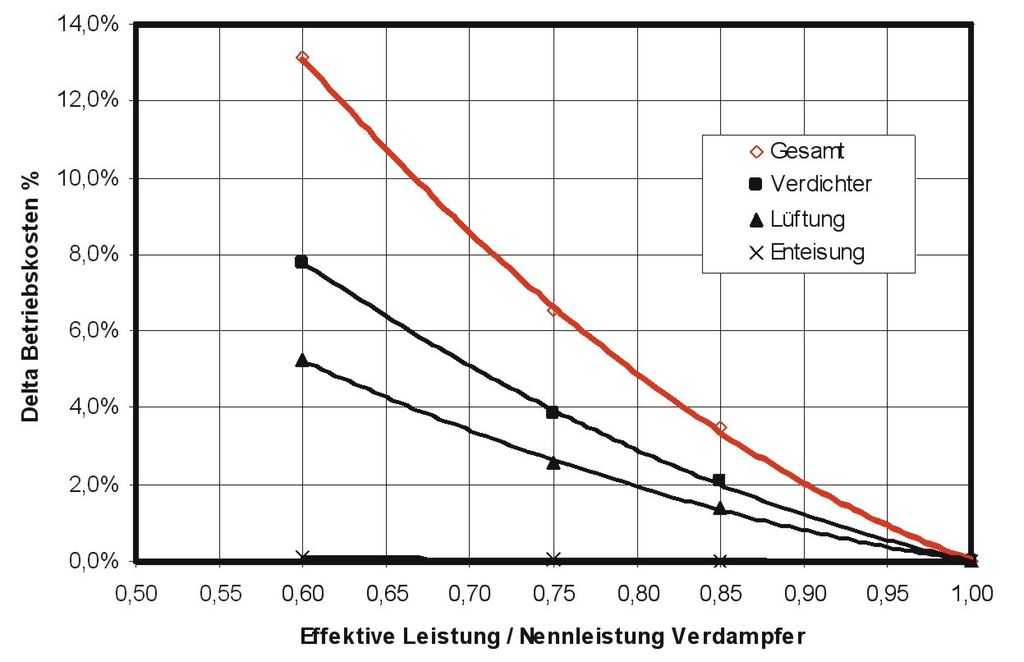 E Betriebskostenzunahme bezüglich der Ventilatoren, der Verdichter und einer eventuellen Reifbildung