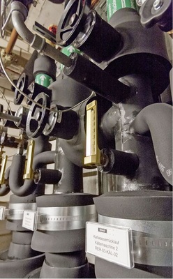 Drei Klimaschränke hätten genügt, doch um sicherzugehen, wurde ein zusätzlicher Schrank von vornherein komplett als Re-dundanzgerät aufgestellt. Dennoch laufen nun alle vier Klimaschränke, von denen im Serverraum zwei mit und zwei ohne Entfeuchtung ausgerüstet sind, parallel im Teillastbetrieb. Dies hat sich tatsächlich als sparsamer erwiesen, als z. B. zwei Geräte auf Dauer bei Volllast arbeiten zu lassen. Auch im USV-Raum wurde mit genügend großer Überschussleistung geplant, sodass hier bei Ausfall eines Klimaschrankes der zweite (Luftvolumenstrom hier: 9000 m³/h, Ablufttemperatur 27 °C, Leistung pro Gerät circa 30 kW) dauerhaft den Part des anderen mitübernehmen kann. Im danebenliegenden Wartungsraum finden sich weitere Redundanzeinrichtungen: Bei Pumpenausfall wurde dort durch eine entsprechende Bypass-Verrohrung dafür gesorgt, dass die nebenstehende Pumpe problemlos die Zusatzleistung zur Förderung des Wasser-Glykol-Stroms erbringen kann.
