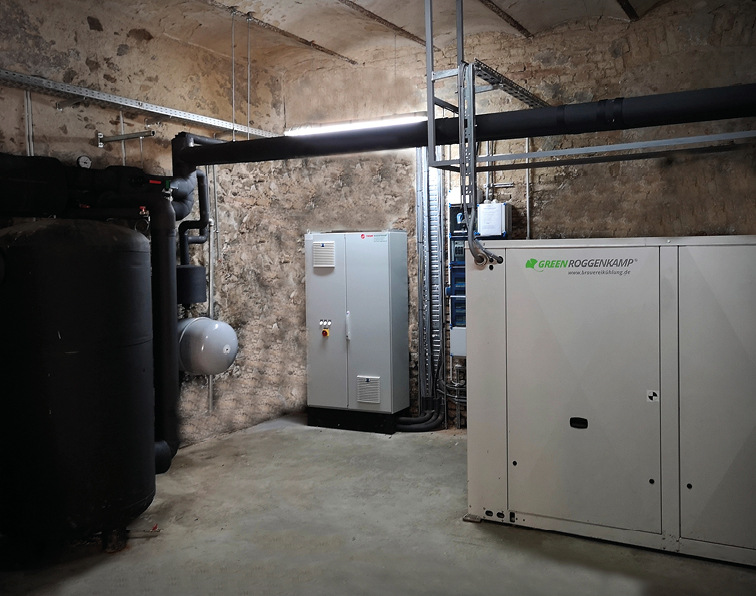 Eine vorab durchgeführte energetische Beratung hat ein Einsparpotenzial von ca. 35,2 MWh/a ergeben. In der Vor-Ort-Analyse durch Trane Roggenkamp wird das Einsparpotenzial ebenfalls entsprechend hoch bewertet. „Das alternative Kälteanlagenkonzept ohne Kolbenverdichter und Ammoniak war zwar zu Beginn ungewöhnlich, jedoch hat das Gesamtsystem schließlich überzeugt. Das Gesamtkonzept inklusive einer vollautomatischen Steuerung, die alle Bereiche und Kühlstellen der gesamten Brauereikühlung umfasst, war zudem mit unserem Budget realisierbar“, erzählt der Brauereiinhaber. Der Einbau der neuen Brauereikühlung erfolgt in einem bisher ungenutzten Raum der Brauerei. Die alte Kühlung konnte bis kurz vor der Umstellung weiterlaufen. Das neue System läuft seit Beginn vollautomatisch und ohne Ausfall. Die Automatisierung der Anlage kann über die webbrowserbasierte Visualisierung von überall und jederzeit eingesehen und parametriert werden. Regelungsanpassungen werden im weiteren Verlauf per Fernwartung und größere Änderungen und Kontrollen vor Ort durchgeführt.