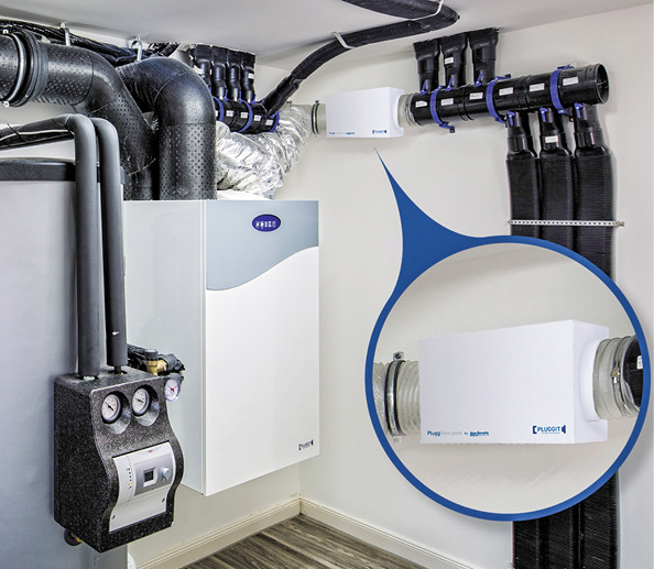 Pluggit bietet in Zusammenarbeit mit Bioclimatic PluggVoxx pure an. Das Ergänzungselement für die Lüftungsanlage arbeitet mit bipolarer Ionisation und schafft so saubere Raumluft. PluggVoxx pure imitiert die bipolare Ionisation, die in der Natur beispielsweise am Meer oder im Gebirge oder bei einem reinigenden Gewitter vorkommt. Die ionisierte Luft bindet die Molekülketten von Umweltschadstoffen. Auch Pollen, Bakterien und Viren werden in ihrer Zellstruktur so geschädigt, dass sie weitestgehend inaktiv werden. Die Ionen werden ständig gebildet und sind damit permanent vorhanden und aktiv. Sie verrichten ihre Arbeit nicht nur in der Raumluft, sondern verteilen sich durch die normale Luftbewegung auch auf Oberflächen. Damit ist ein möglicher Vireneintrag durch Aerosole nahezu gebannt. PluggVoxx pure lässt sich ohne großen Aufwand in die Zuluftleitungen bestehender Pluggit-Lüftungssysteme oder anderer Lüftungsanlagen integrieren. Die Nachrüstung ist ebenfalls möglich. Das Modul misst 600 x 280 x 205 mm und wird mit seiner Ionisationsleistung auf das Raumluftvolumen abgestimmt.