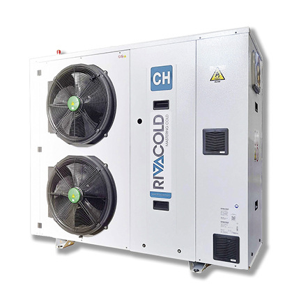 Rivacold bietet eine neue Geräteserie: die Flüssigkeitskühler Champ CH mit dem natürlichen Kältemittel Propan (R290). Die fünf Modelle für die Normalkühlung decken den Leistungsbereich zwischen 8 und 20 kW ab. Im Parallelbetrieb sind bis zu 4 Geräte im Master-Slave Modus kombinierbar. Komplettiert wird das Systemangebot durch ein Hydraulikmodul mit Wasserspeicher, Armaturen und drehzahlgeregelten Verbraucherpumpen in den drei Speichergrößen 200, 300 und 600 Liter. Die Gerätegeneration Champ CH vereint verschiedene Maßnahmen zur Steigerung der Kühl- und Energieeffizienz. Dazu zählen elektronisch gesteuerte Bypass- und Expansionsventile in Verbindung mit einem optimierten Plattenverdampfer, effiziente Speicherladepumpen, sowie Verflüssigerlüfter mit EC-Motoren, was in Summe die Anforderungen der Ökodesign-Verordnung übertrifft. Die Außeneinheit erfüllt die Verordnungen und Vorschriften für einen sicheren Betrieb mit dem A3-Kältemittel Propan.