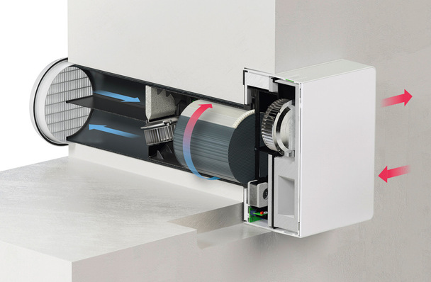 In Ergänzung zur vergleichsweise trägen Grundkonditionierung durch die Betonkernaktivierung, führen Lüftungsanlagen dem Bürogebäude vortemperierte Frischluft zu. In den Fluren sorgen Deckenkassetten für angenehmes Klima, sodass keine Temperaturunterschiede beim Verlassen der Büros zu spüren sind. Auch die Lüftungsanlagen und Deckenkassetten beziehen Warm- und Kaltwasser von der NH3 Wärmepumpe.