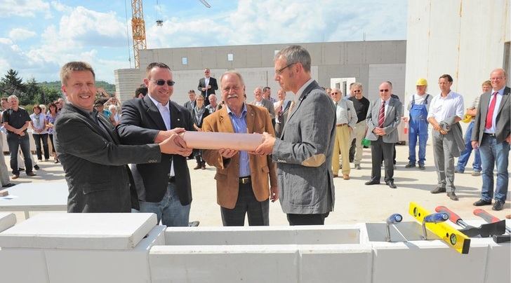Eine besondere Freude war es für ihn, Theo Mack, den ersten Ehrenlandesinnungsmeister und Gründervater der Bundesfachschule, der im Juli seinen 90. Geburtstag feierte, den Ehrenbundesinnungsmeister Norbert Günther und die beiden Ehrenlandesinnungsmeister Dieter Auth und Wolfgang Förster begrüßen zu können. Bürgermeister Ulrich Wilke überbrachte die guten Wünsche seiner Gemeinde und verwies dabei auch auf die wirtschaftliche Bedeutung der Bundesfachschule für die gesamte Region. Architekt Eckhardt Hartmann sagte bei seiner Ansprache, dass die Schule nicht nur Lernort, sondern auch Lebensraum werden soll. Bei dem anschließenden Rundgang gab er einen Einblick in die einzelnen Bereiche des Neubaus.