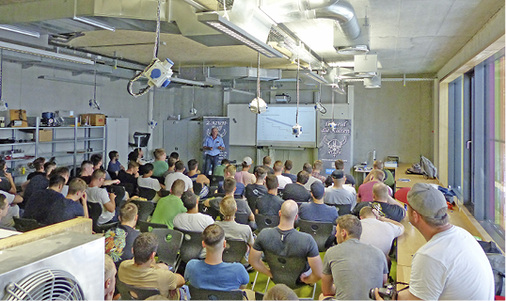 Im Anschluss an die Veranstaltung und aufgeheizt“ durch die neuen Informationen, die die Referenten verständlich und bildhaft vermittelt haben, nahmen die hungrigen Azubis die Gelegenheit wahr, sich beim Grillen und bei lockerem Beisammensein auszutauschen und den Abend ausklingen zu lassen. Grillmeister (und Lehrer an der Schule) Markus Müller hat zusammen mit weiteren Hilfslehrern“ höchstpersönlich Würstchen und Putenschnitzel gewendet. Vor dem Grill bildete sich in der Mittagshitze eine Azubitraube, die die Disziplin der Schüler, die während der Vorträge komplett ruhig waren, widerspiegelte. Auch beim 2. Azubi-Treff haben sich die Referenten wieder mit einigen besonders interessierten Azubis ausgetauscht. Harald Conrad beispielsweise durfte gleich mehreren Azubis viele offene Fragen beantworten. Es macht Spaß zu sehen, mit welcher Begeisterung der junge Nachwuchs in die Thematik der Branche einsteigt. Mein Fazit nach der Veranstaltung: Die Jungs haben in Gelnhausen ganz toll mitgemacht, indem sie interessiert zuhörten, Fragen stellten und alle sehr freundlich waren. Es kann nicht genug betont werden, dass solche Jungs von unserer Branche dringend gebraucht werden. Diese Azubis kann man beruhigt auf Kunden loslassen“, sagte einer der Referenten, und wir von der KK-Redaktion schließen uns dieser Aussage an. Schauen Sie sich die Jungs doch mal an: Ein Video zur Veranstaltung gibt es unter https://youtu.be/46bdkz1dsYE DR