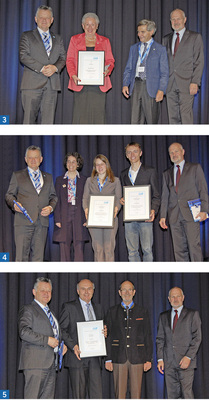 Die eigentliche DKV-Tagung begann am Donnerstag, den 20. November – ebenfalls traditionell – mit den Ehrungen. Neben zahlreichen Auszeichnungen, darunter 25 Mal die Silberne Ehrennadel für 25-jährige Mitgliedschaft (es waren allerdings nur vier zu Ehrende anwesend), siebenmal die GoldeneEhrennadel für 40 Jahre Mitgliedschaft (nur ein zu Ehrender anwesend) und zweimal Goldene Ehrennadel für 50 Jahre Mitgliedschaft (nur ein Anwesender) wurden auch wieder besonders herausragende Universitätsabschluss-arbeiten mit dem DKV-Studienpreis gewürdigt. Ihn er- hielten in diesem Jahr gleich zwei Ab-solventen der Uni Kassel, Fachgebiet Technische Thermodynamik, Dominic Dedering für seine Masterarbeit Inbetriebnahme einer neuartig entwickelten Absorptionskältemaschine“ und Frauke Poblotzki für die Masterarbeit Inbetriebnahme einer Versuchsanlage zur Untersuchung des be-ginnenden Blasensiedens von natürlichen Kältemitteln in senkrechten Kanälen“. Die Laudatio hielt für beide Absolventen Prof. Dr.-Ing. Andrea Luke (Bild 4).