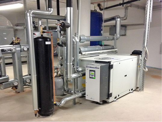 Durch die Lösung mit einer Wärmepumpe mit Frequenzumrichter-betriebenen Scroll-Verdichtern, elektronischem Expansionsventil zur besseren Ausnutzung der Wärmeübertragerflächen und EC-Ventilatoren am Verflüssiger werden Ressourcen geschont und die CO2-Emissionen verringert.