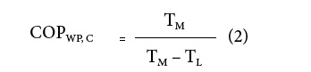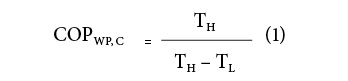 Eine der wichtigsten Anforderungen sind hohe Vorlauftemperaturen. Werden die Vorlauftemperaturen bei kleinen Heizwärmepumpen für Niedertemperaturheizungen ausgelegt, steigen die Einsatzmöglichkeiten in der Prozess- und Versorgungstechnik dagegen mit der Vorlauftemperatur. An der Leistungszahl (COP WP, C ) soll es möglichst keine Abstriche geben. Aus Gleichung (1) ist ersichtlich, dass die Carnot-Leistungszahl von der Temperaturdifferenz zwischen der warmen (T H ) und kalten Seite (T L