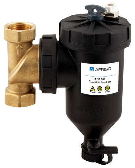 Afriso bietet mit den Magnetschlammabscheidern ADS 160 und ADS 180 HP eine Lösung zur kontinuierlichen Entfernung von festen Partikeln und Magnetit aus Wärmepumpenanlagen. Die Abscheidung erfolgt mehrstufig: Durch einen Strömungseffekt wird das Systemwasser in eine Drallbewegung versetzt, sodass sich Verunreinigungen im unteren Teil des Geräts absetzen. Dort werden metallische Partikel von einem Neodymmagneten mit einer Stärke von 14.000 Gauss angezogen. Anschließend passiert das Wasser einen Edelstahlfilter mit einer Maschenweite von 500 µm beziehungsweise 800 µm. Die Installation ist für den Rücklauf vor dem Wärmeerzeuger vorgesehen, um empfindliche Komponenten wie Wärmetauscher, Verflüssiger, Ventile oder Pumpen zu schützen. Gesammelte Verunreinigungen können über einen integrierten Ablasshahn entfernt werden. Ein Handentlüfter im Deckel dient der Entlüftung bei Serviceeinsätzen. Für eine intensive Reinigung lässt sich der Abscheider mit einem Montagewerkzeug zerlegen.