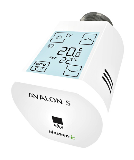 Mit dem Avalon S erweitert Blossom-ic seine Produktlinie um einen Funk-Heizkörperthermostat, der zusammen mit einem Gateway den digitalen hydraulischen Abgleich in Ein- und Zweirohrheizungen automatisch durchführt. Das System erfordert keine Eingriffe ins Rohrnetz. Es verfügt über zwei integrierte Bewegungssensoren an der Vorder- und Seite zur Anwesenheitserkennung. Befindet sich niemand im Raum, senkt das System die Temperatur auf eine voreingestellte Stufe. Die Ansprechempfindlichkeit der Fensteröffnungserkennung ist einstellbar. Ein integriertes Wochenprogramm kann direkt am Gerät, per App oder über ein Gebäudemanagementsystem konfiguriert werden. Das 100 mm lange Gerät besitzt ein beleuchtetes, von oben ablesbares Touch-Display und wird auf Ventile mit M 30 x 1,5 mm Gewinde montiert, wobei Adapter für andere Ventiltypen verfügbar sind. Die Stromversorgung übernehmen zwei 1,5-V-AA-Batterien. Pro Gateway lassen sich bis zu 20 Thermostate mit einer Funkreichweite von bis zu 50 m einbinden; die Gateway-Anzahl ist erweiterbar. Das Institut für Technische Gebäudeausrüstung Dresden bestätigt, dass das System in Bestandsgebäuden mindestens mit dem konventionellen Verfahren B vergleichbar ist.