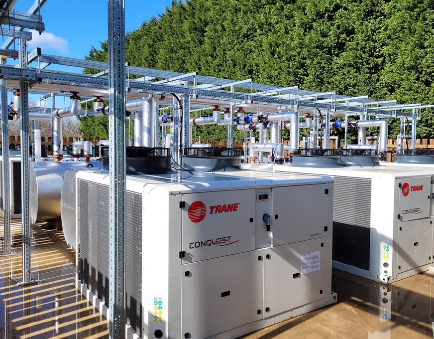 Die Luft/Wasser-Scroll-Wärmepumpe Conquest CXAX ermöglicht reversibles Kühlen und Heizen in einem weiten Betriebsbereich, der bis zu - 15 °C Außenluft und bis zu 60 °C Warmwassertemperatur reicht. Die Geräte arbeiten mit dem Kältemittel R-454 B mit niedrigem GWP-Wert, das Trane für sein gesamtes Programm an Scrollverdichter-Kaltwassersätzen, Wärmepumpen, Mehrrohranlagen und Dachgeräten verwendet.