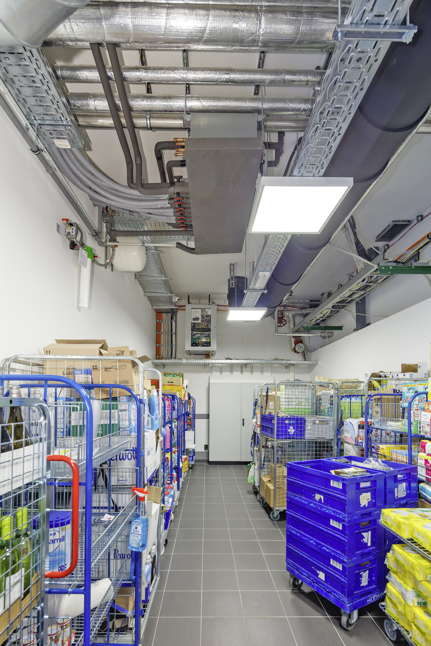 Zur Bedienung der Anlage kommt ein Zentralsteuerungssystem AT 50 B zum Einsatz, das im hinteren Teil des Lagers untergebracht ist. Die zentrale Bedienung und Überwachung der Anlagen eröffnet vielseitige Möglichkeiten, den Energieverbrauch noch weiter zu reduzieren und die Betriebssicherheit zu erhöhen. Zur Senkung der Energiekosten sind in dem Drogeriemarkt zum Beispiel drei automatische Abschaltzeiten vorprogrammiert, sodass die Klimaanlage nicht versehentlich nachts durchlaufen kann.