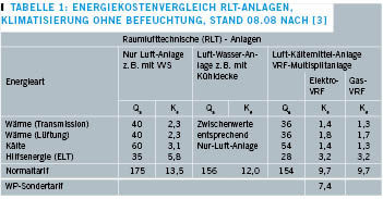 Aufgrund dieser quasi-außentemperaturunabhängigen Arbeitsweise ist der direkte Energiekosten-Vergleich u.a. mit konventioneller Heizungstechnik möglich. Diesbezügliche Kostenrichtwerte für alle gängigen RLT-Anlagen zeigt Tabelle 1.